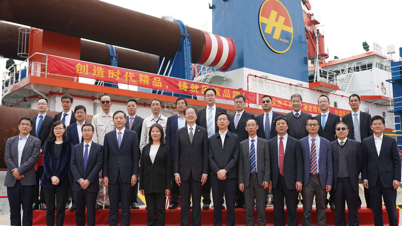 On Behalf of Jiangsu Haixin, Chairman Meng Xianhong expressed at the ceremony: the successful newbuilding of “New Haixu” is the achievement of decades’ experience accumulated by Shanghai Jiaotong University, CCCc Group, Jiangsu Haihong and Jiangsu Haixin. The core technology from design till the completeness of construction were fully domestic developed and possesses complete independent intellectual property rights. In the context of the new era, Jiangsu Haixin will continue proceeding with its own advantage to contribute its share to the building of the Belt and Road Initiative.