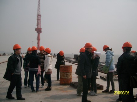 上午在海新辦公樓三樓會議室,公司副總工程師袁凌軍給同學(xué)們介紹了海新船務(wù)重工的整體布局,按碼頭、堆場、廠房、船塢工程順序介紹了施工關(guān)鍵難題和新技術(shù)應(yīng)用、施工設(shè)備情況。接著袁副總工帶同學(xué)們到現(xiàn)場做具體介紹。中午同學(xué)們在公司總部用餐,稍作休息后,由公司副總經(jīng)理張亞峰帶領(lǐng)去新通海沙項目部。張副總給同學(xué)們介紹了長江駁岸吹填工程的施工情況和工程設(shè)備。