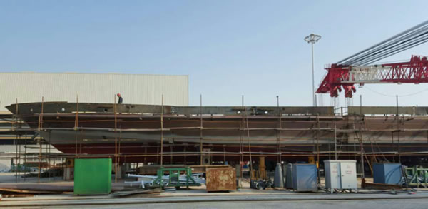 目前,先開工的HX023船的鋁質(zhì)上建已經(jīng)制作完畢,等待吊裝,后開工的HX022船的機電設(shè)備已逐步到廠。兩艘公務(wù)船的美麗線型,已在總裝平臺上展現(xiàn)雛形。