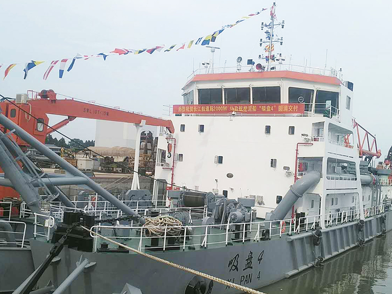 “吸盤4”輪由交通運(yùn)輸部投資,中國船舶工業(yè)集團(tuán)公司第七〇八研究所設(shè)計(jì),長江宜昌航道工程局用船。該船于2016年4月開工,2017年3月下水,2017年5月完成試航,2017年6月完成挖泥試驗(yàn)。