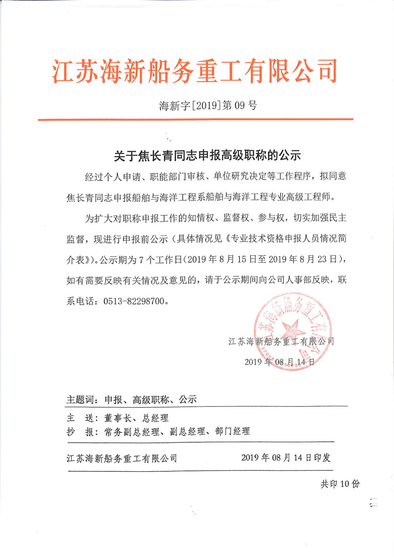 您好,歡迎訪問【申報(bào)公示】關(guān)于高級(jí)職稱的公示-公司新聞-江蘇海新船務(wù)重工有限公司-江蘇海新船務(wù)重工有限公司網(wǎng)站!