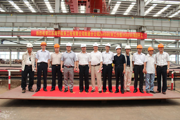 2013年7月8日上午,江蘇海新船務(wù)重工承建的江蘇海宇航務(wù)有限公司2ⅹ456kW工作船舉行開工儀式。出席開工儀式的有海新重工董事長兼總經(jīng)理孟咸宏先生、海宏公司副董事長陳華美先生、...