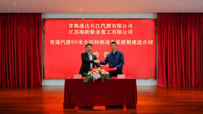2020年04月08日,江蘇海新船務(wù)重工有限公司與常熟通達長江汽渡有限公司在海新公司七樓會議室舉行了60 米全回轉(zhuǎn)推進車客渡船簽約儀式。...