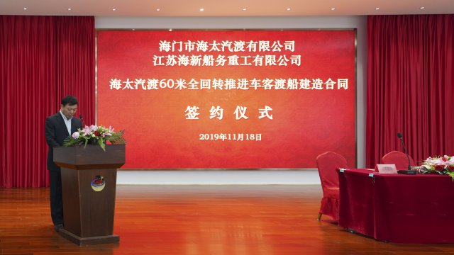 2019年11月18日上午,江蘇海新與海太汽渡在海新公司七樓會議室舉行了60米全回轉推進車客渡船簽約儀式。 ...