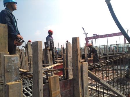 2017的1月3日,江蘇海新船務(wù)重工辦公生活區(qū)工程呈現(xiàn)忙碌的景象。辦公樓地下車庫(kù)--工人們正在澆灌混凝土;兩棟宿舍樓第三層--工人們正在制模;塔吊正在吊運(yùn)腳手材料;工程車正在轉(zhuǎn)運(yùn)...