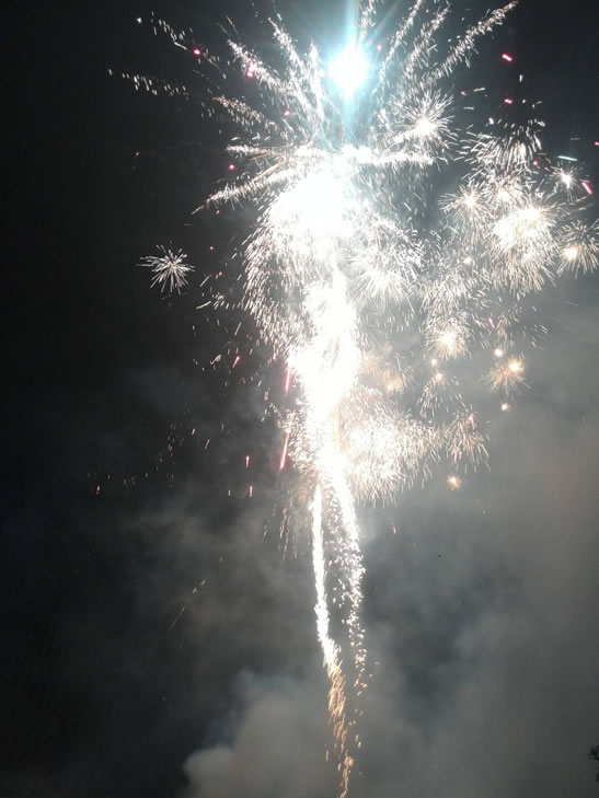 煙花太美,美得有了些魅惑的味道。本來黑黑的夜就充滿了神秘與誘惑,在這缺少七色光的暗夜中,大自然感到難以展現(xiàn)自己的美麗,把舞臺讓給了煙花。于是夜空中千姿百態(tài)的煙花開出一片嫵媚,旋出一團(tuán)團(tuán)魅影。她如展翅的鳳凰又或翩翩起舞的精靈,似乎在祝福著我們海宏建設(shè)和海新重工。